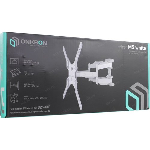 Кронштейн для телевизора Onkron M5 белый 37"-70" макс.36.4кг настенный поворот и наклон