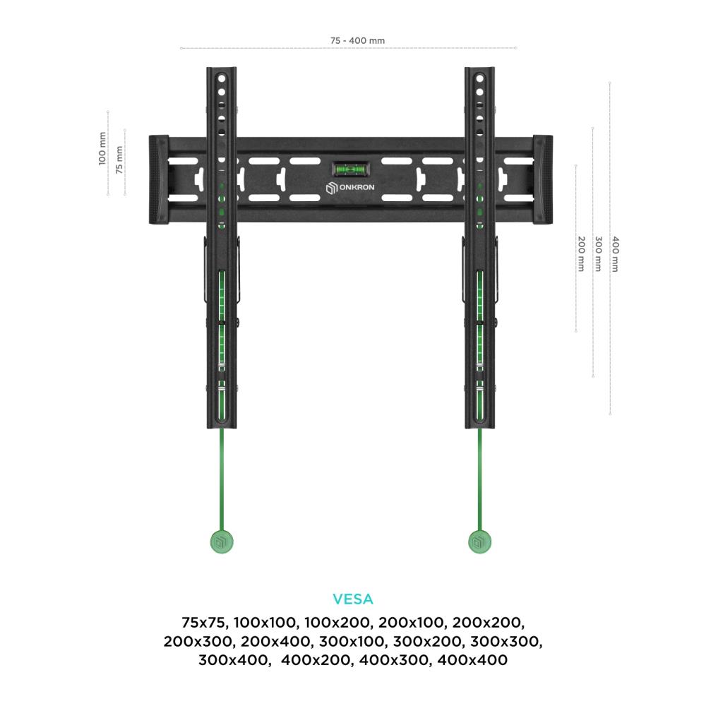 Крепеж ONKRON SN14 черный (Для телевизоров диагональю 32"-65" VESA: 75x75, 100x100, 100x200, 200x100, 200x200, 200x300, 200x400, 300x100, 300x200, 300x300, 300x400, 400x200, 400x300,400x400 мм) [4603728441108]