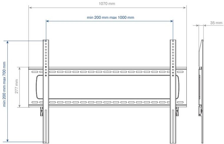 VESA 200 x 200, VESA 300 x 200, VESA 300 x 300, VESA 400 x 200, VESA 400 x 300, VESA 400 x 400, VESA 600 x 400, VESA 800 x 400, VESA 800 x 500, VESA 800 x 600, VESA 800 x 700, VESA 900 x 600, VESA 1000 x 700