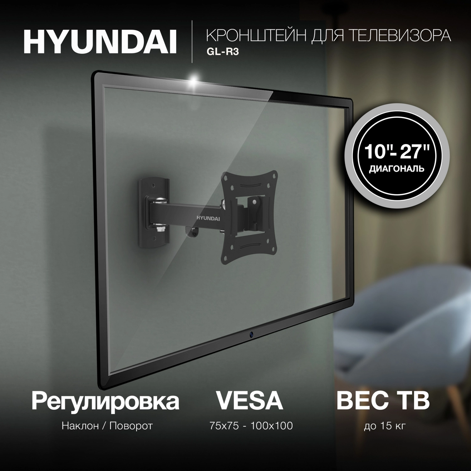 Кронштейн для телевизора Hyundai GL-R3 черный 10"-27" макс.15кг настенный поворот и наклон HMA27FS215BK71