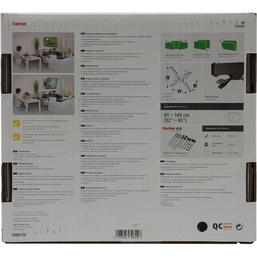 Кронштейн для телевизора Hama H-118102 черный 32"-65" макс.20кг настенный поворот и наклон 00118102