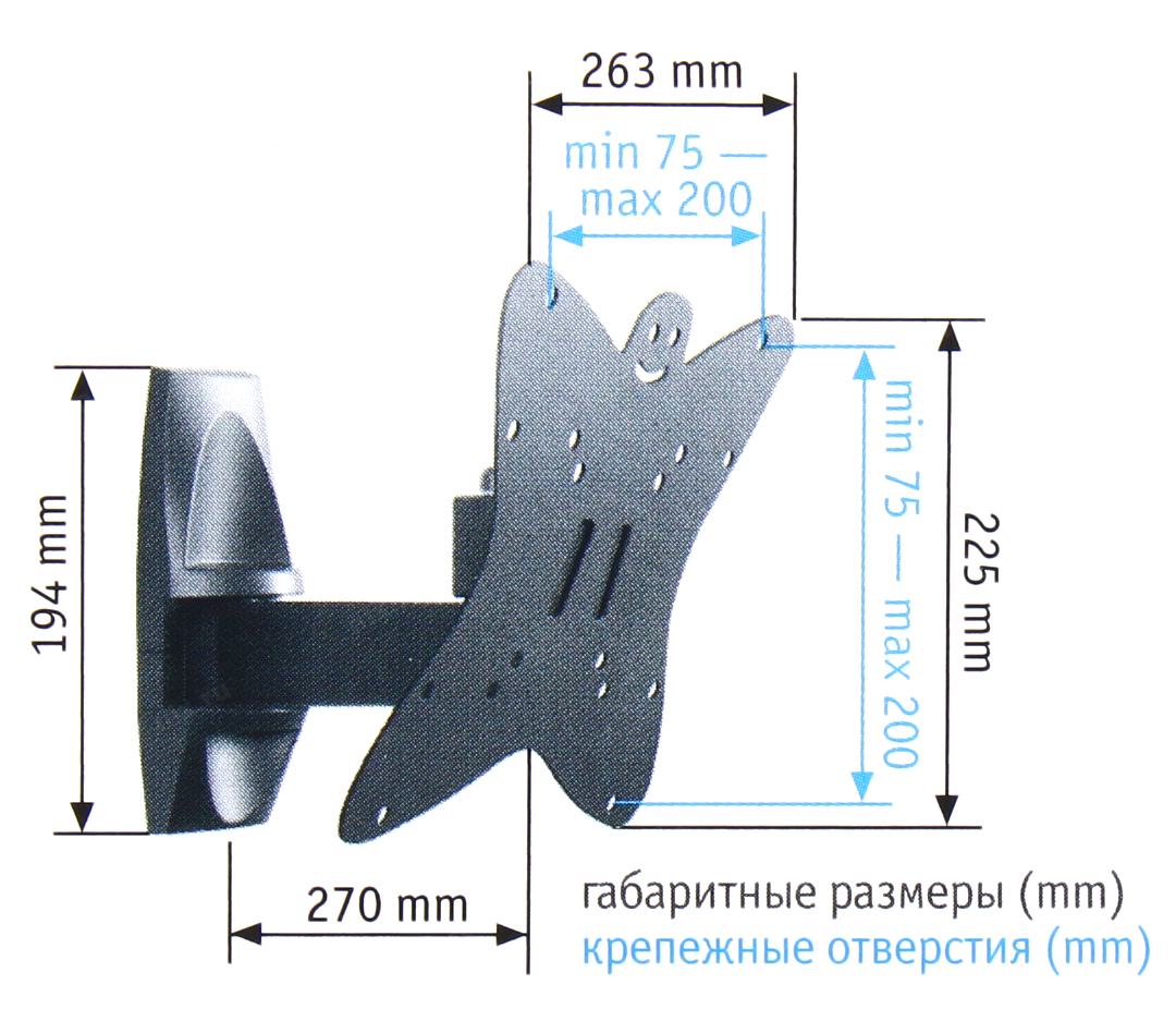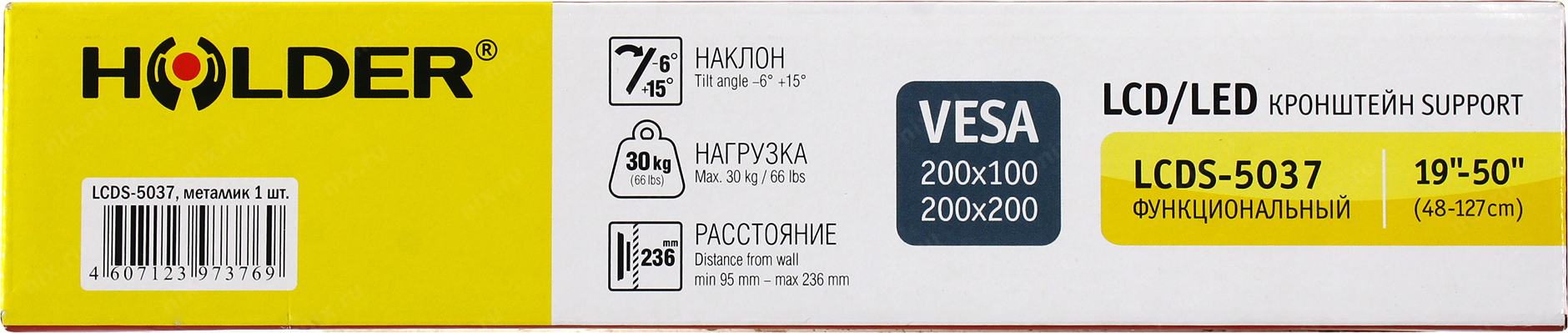 Кронштейн для телевизора Holder LCDS-5037 металлик 20"-37" макс.30кг настенный поворот и наклон LCDS-5037 METALLIC
