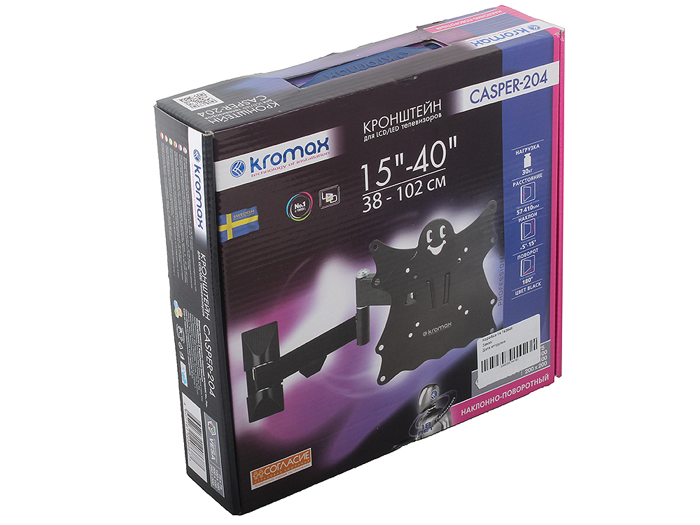 Кронштейн для телевизора Kromax Casper-204 черный 20"-43" макс.30кг настенный поворот и наклон 20176