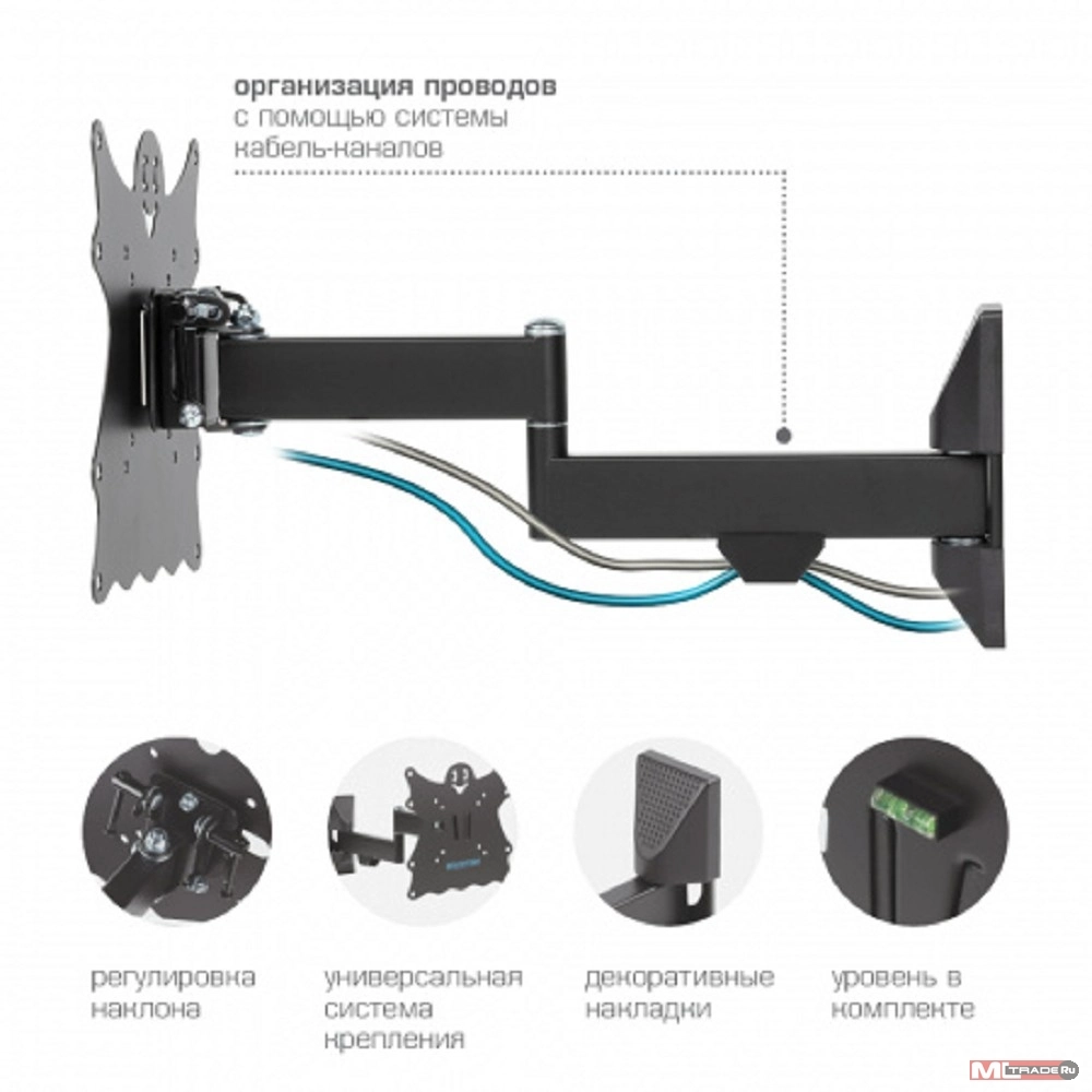 Наклонно-поворотный кронштейн для крепления к стене телевизоров и мониторов с не большой и средней диагональю экрана. Высококачественная стальная конструкция обеспечит надежное и безопасное использование. Легко снимающаяся монтажная пластина облегчит процесс уборки.