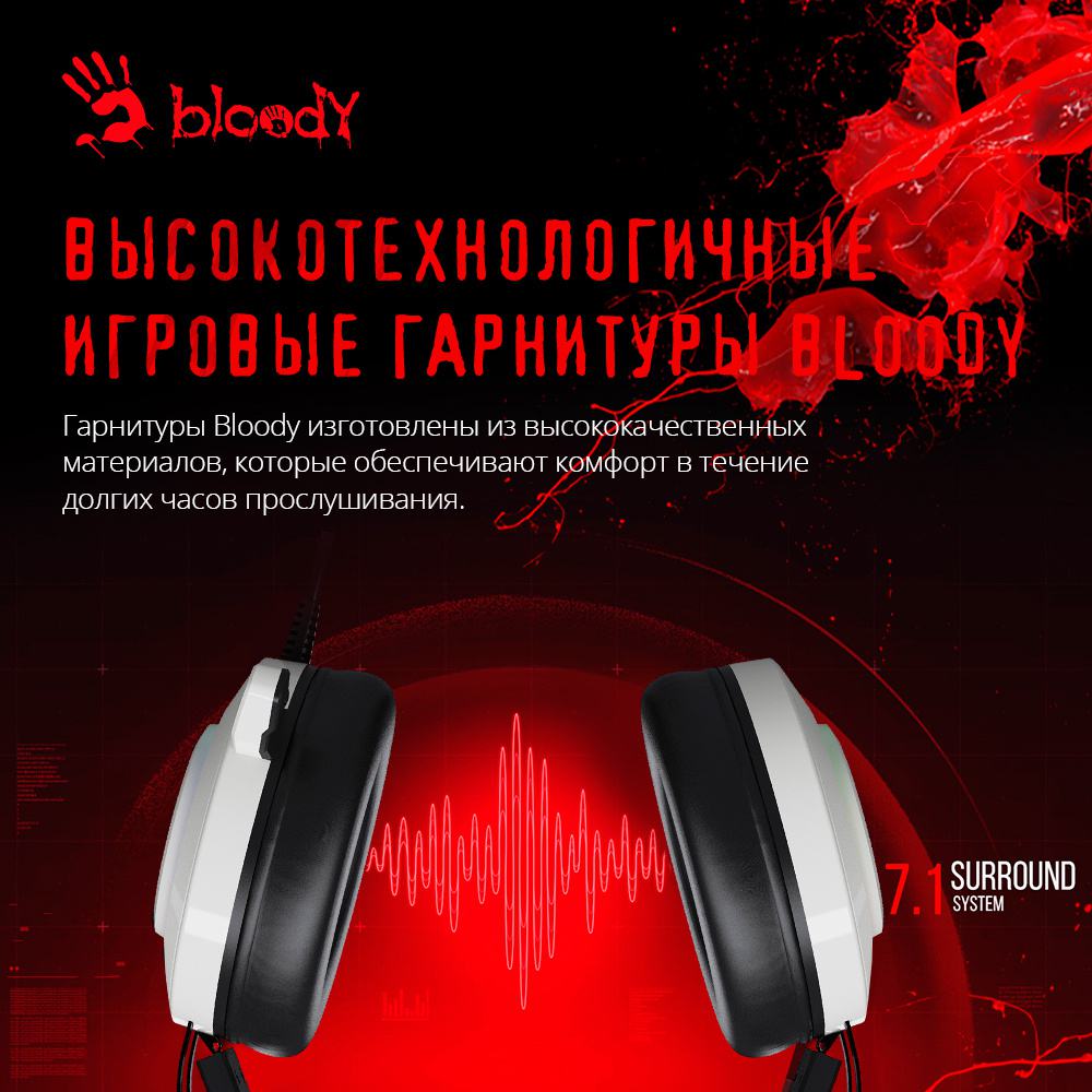 Наушники A4Tech Bloody G521 белый/черный 2.3м мониторные USB оголовье (G521 (WHITE)) [G521(WHITE)]