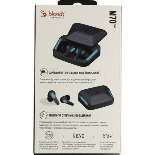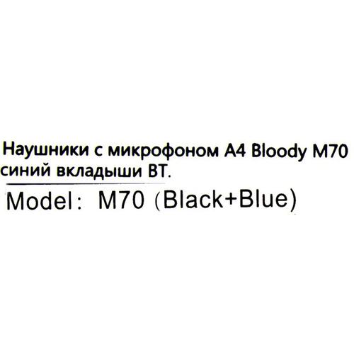 Гарнитура внутриканальные A4Tech Bloody M70 черный/синий беспроводные bluetooth в ушной раковине (M70 BLACK+BLUE)