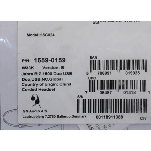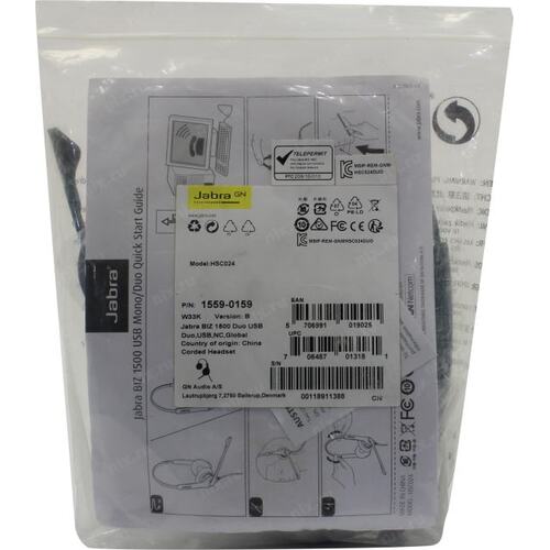 Гарнитура Jabra 1559-0159 Гарнитура Jabra BIZ 1500 Duo USB (1559-0159)