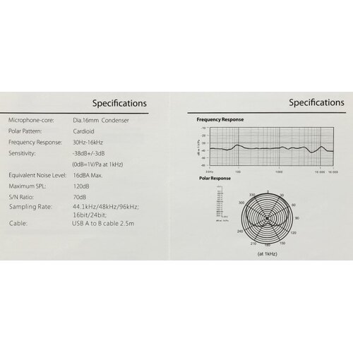 Микрофоны MAONO MAONO AU-A04 (Конденсаторный, 192/96/48/44.1кГц 24/16bit, 30Гц – 16кГц, 2,5 м)