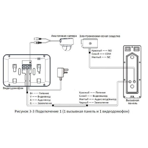 Контактные площадки для двух вызывных панелей с аудио и видео, видеовыход, вход питания