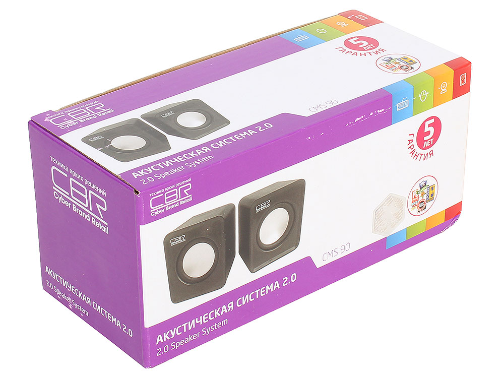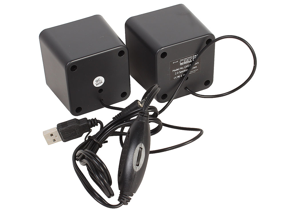 Колонки CBR CMS 90 Black, Акустическая система 2.0, питание USB, 2х3 Вт (6 Вт RMS), материал корпуса пластик, 3.5 мм линейный стереовход, регул. громк., цвет чёрный [CMS90Black]