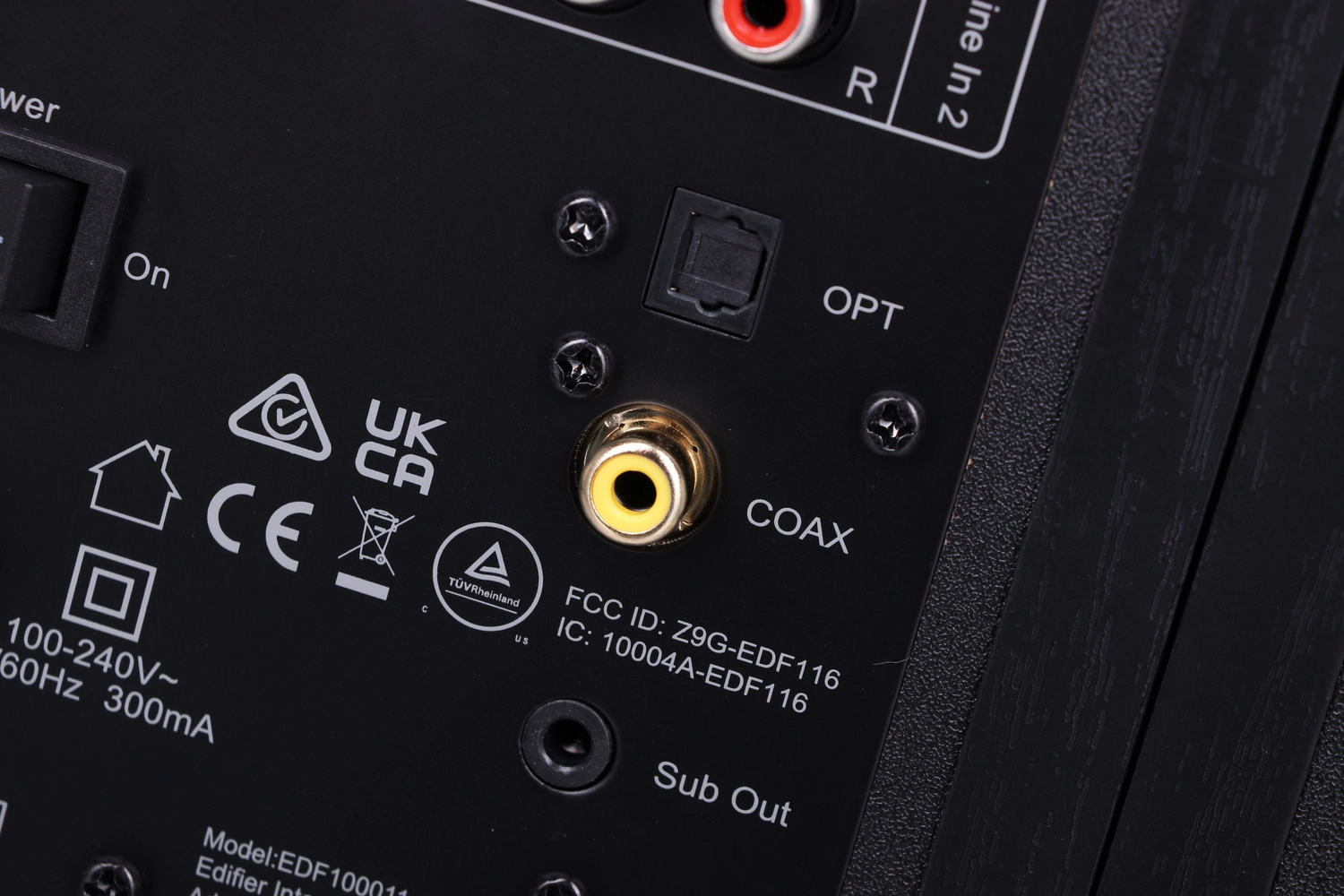 Аудиовход 2xRCA, коаксиальный вход, оптический вход, разъем для подключения сабвуфера