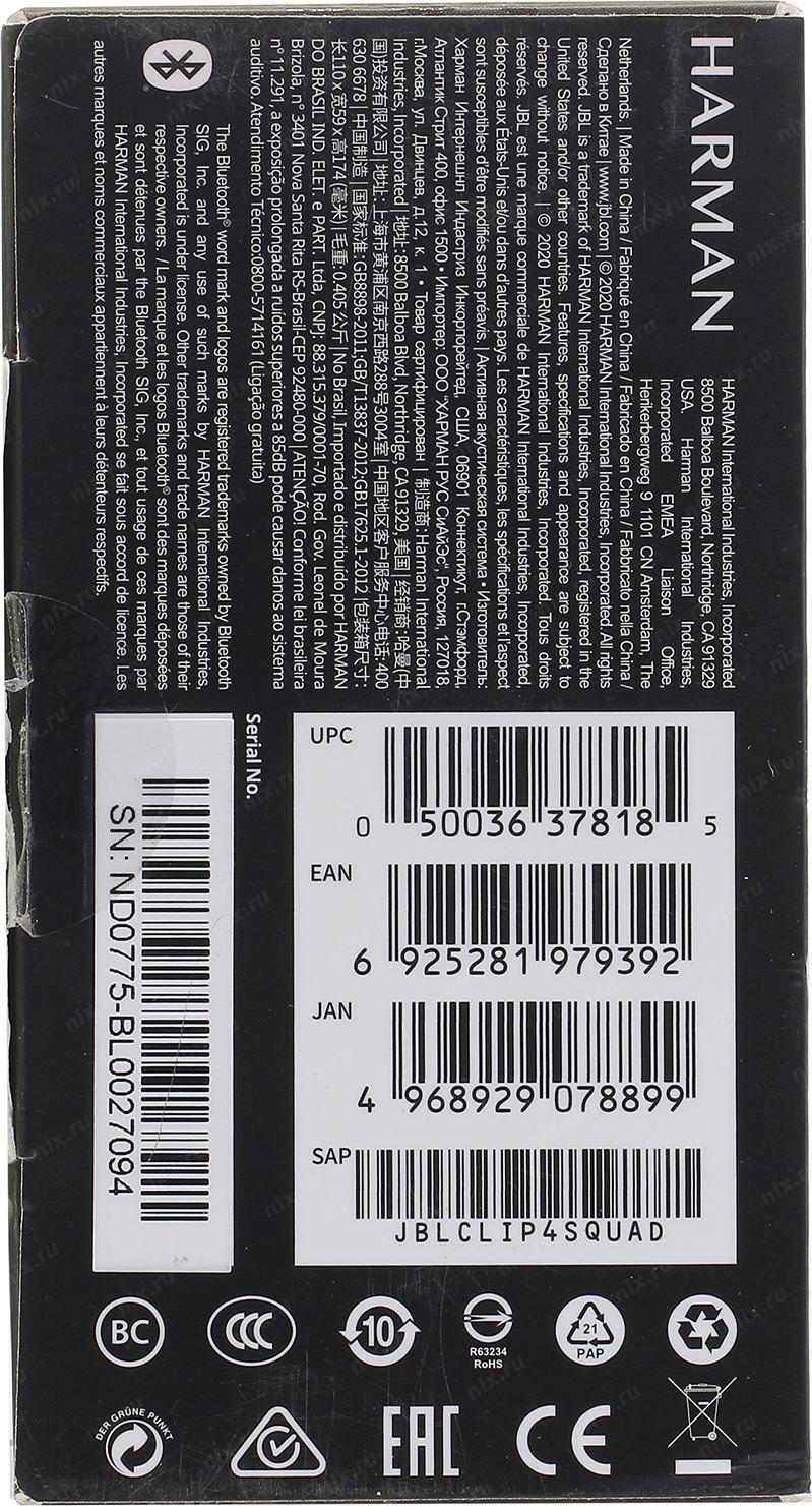 Колонка порт. JBL Clip 4 камуфляж 5W 1.0 BT 15м 500mAh (JBLCLIP4SQUAD)