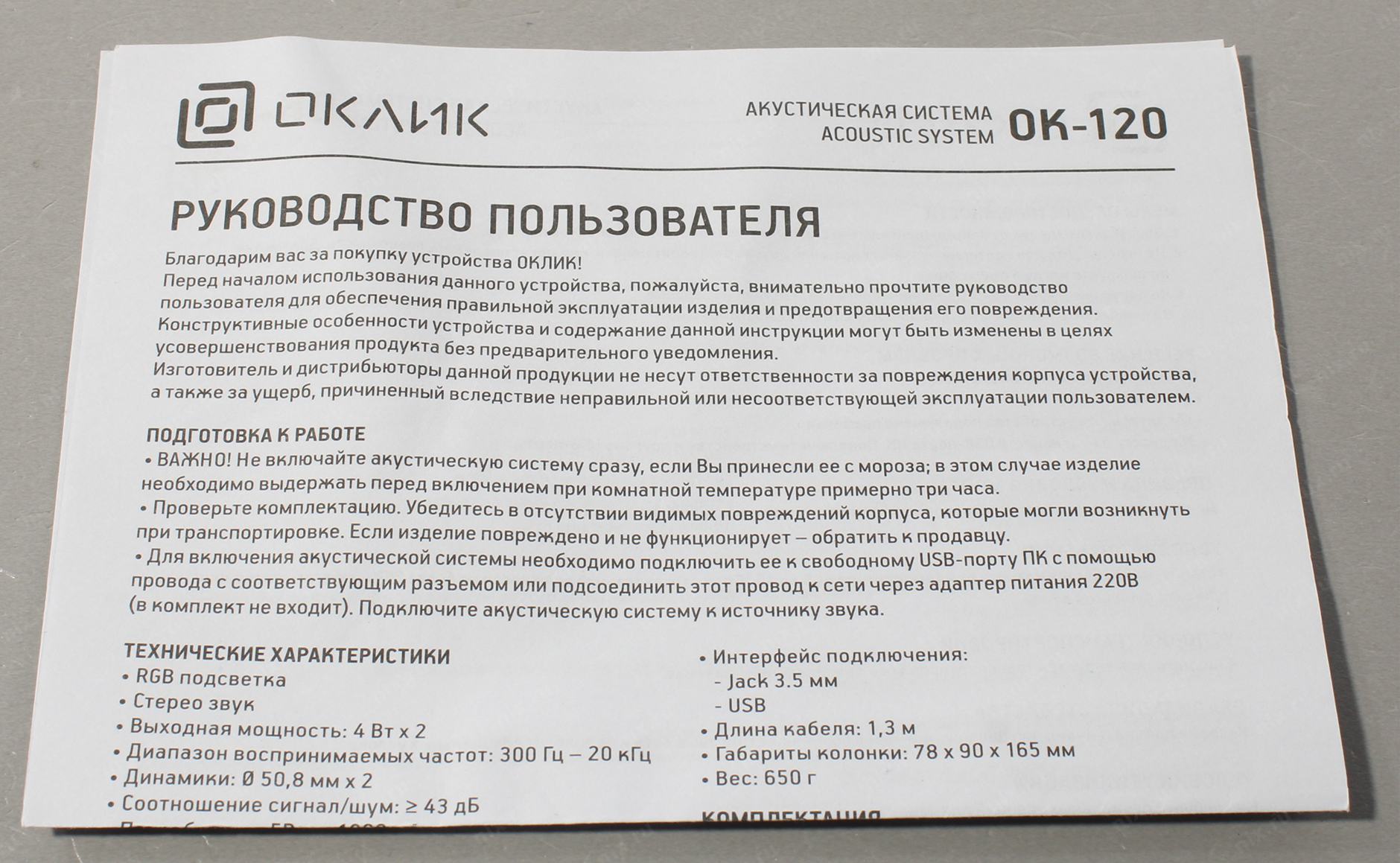 USB Type A (только питание), миниджек 3.5 мм "папа"
