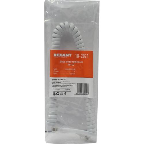 Патч-корды (сетевые, телефонные) Rexant (18-2021) Шнур для телефонной трубки, витой RJ-10 (4P-4C), 2м, белый