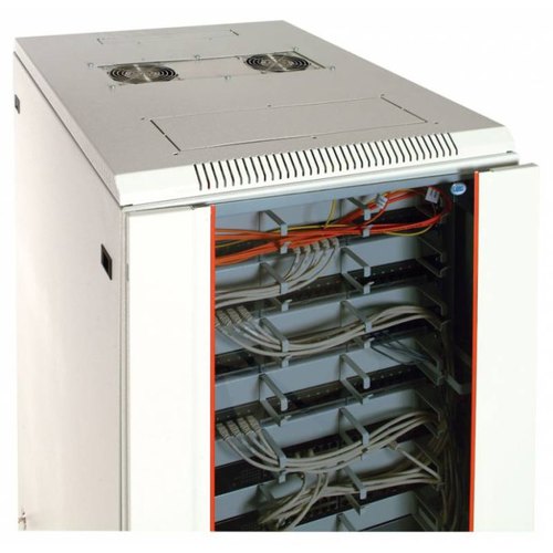 Возможна установка 2 приобретаемых отдельно вентиляторных модулей R-FAN в основание шкафа и 2 приобретаемых отдельно вентиляторных модулей R-FAN в крышу шкафа
