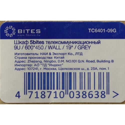 Монтажный шкаф 5bites Шкаф телекоммуникационный настенный TC6401-09G 9U / 600*450 / WALL / GREY