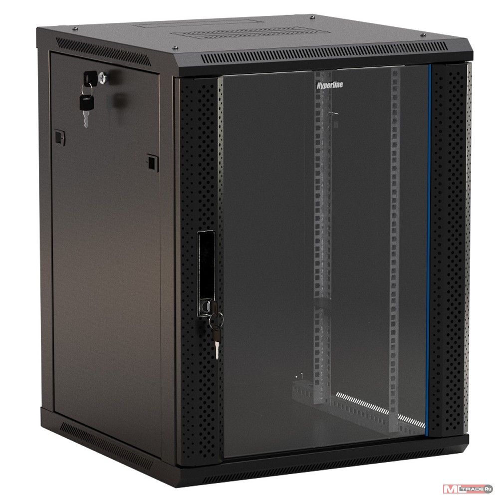 Шкаф коммутационный Hyperline (TWB-0945-SR-RAL9004) настенный 9U 600x450мм пер.дв.стал.лист 60кг черный 275мм 180град. 500мм IP20 сталь