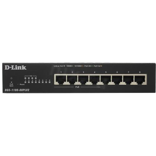 Сетевое оборудование D-Link DGS-1100-08PLV2/A1A Настраиваемый L2 коммутатор с 8 портами 10/100/1000Base-T (4 порта PoE 802.3af/at, PoE-бюджет 80 Вт)