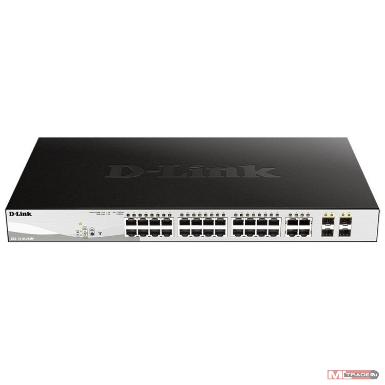 Коммутатор D-Link DGS-1210-28MP/F3A Настраиваемый L2 коммутатор с 24 портами 10/100/1000Base-T и 4 комбо-портами 100/1000Base-T/SFP (24 порта PoE 802.3af/at, PoE-бюджет 370 Вт)