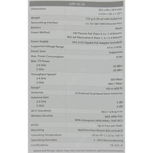 Wi-Fi точка доступа 1167MBPS UNIFI UAP-AC-M UBIQUITI