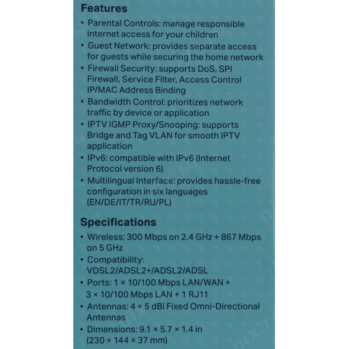 Роутер беспроводной TP-Link Archer VR300 AC1200 10/100BASE-TX/ADSL черный
