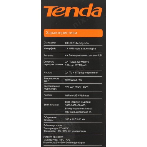 Wi-Fi маршрутизатор 1200MBPS 10/100M DUAL BAND AC5 TENDA