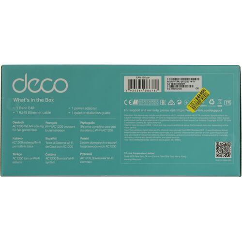 Сетевое оборудование TP-Link Deco E4(1-pack) AC1200 Домашняя Mesh Wi-Fi система [DecoE4(1-pack)]
