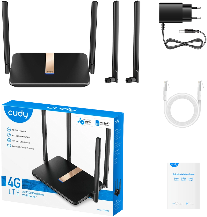 Роутер беспроводной Cudy LT500D AC1200 10/100BASE-TX/4G cat. 4 черный