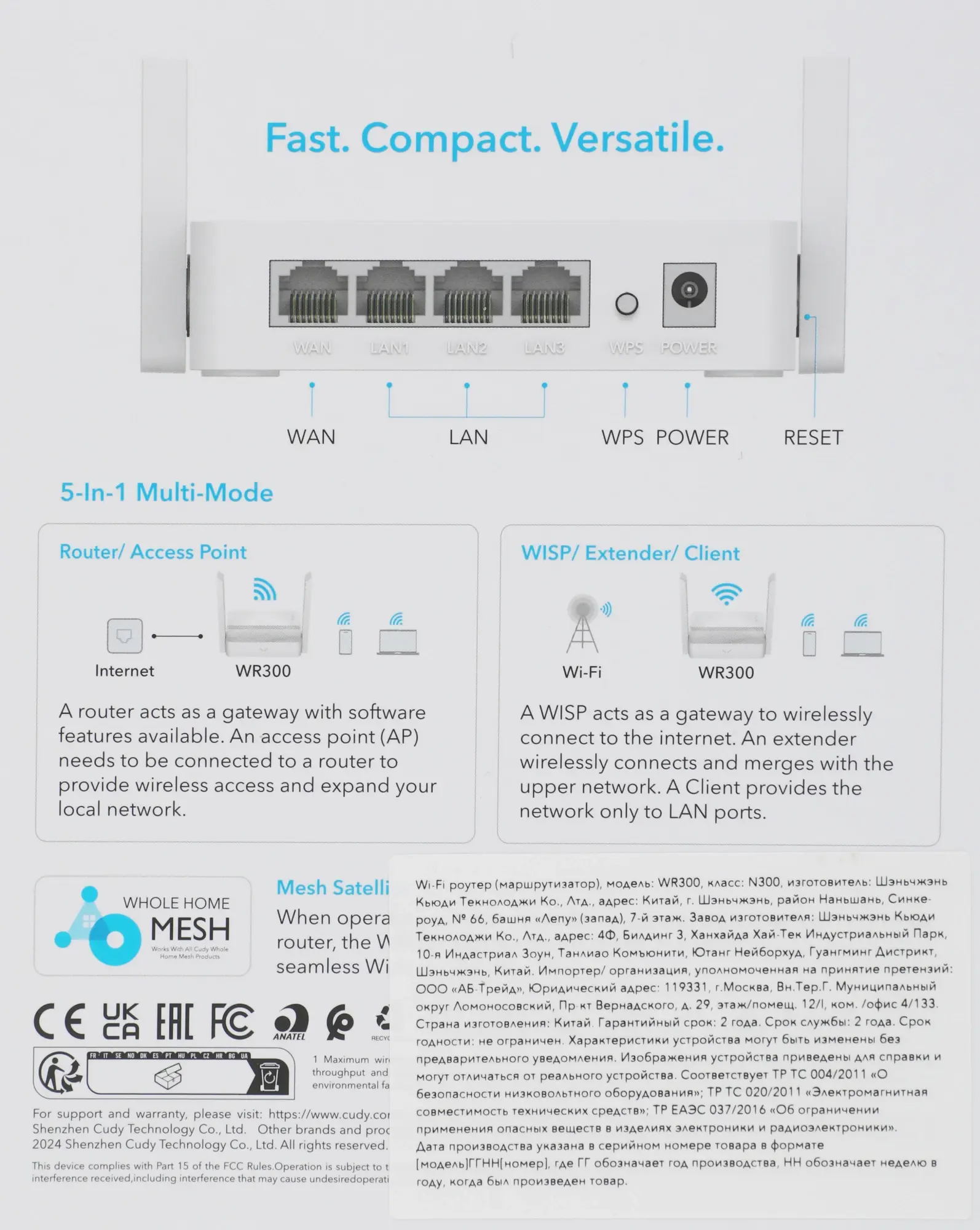 Роутер беспроводной Cudy WR300 N300 10/100BASE-TX/Wi-Fi белый