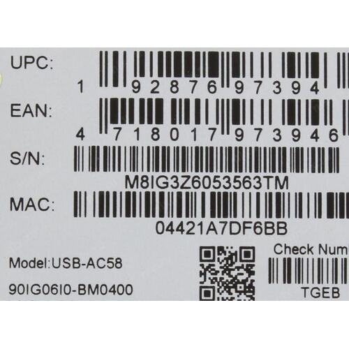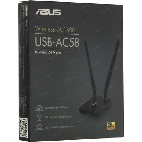 Сетевое оборудование ASUS USB-AC58 Беспроводной двухдиапазонный USB 3.0 адаптер AC1300, внешняя съемная антенна, Wi-Fi 5 (ac)