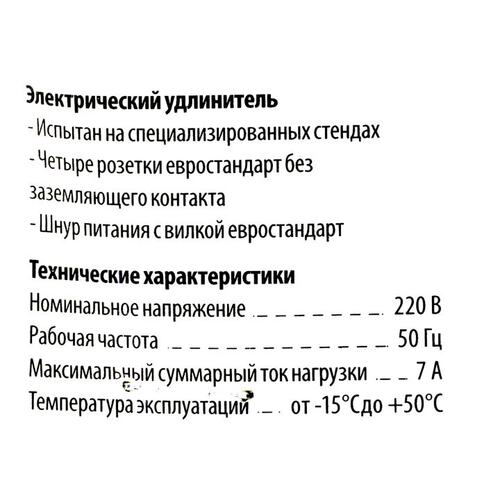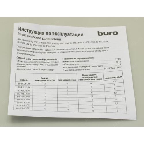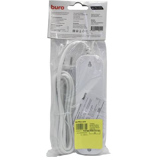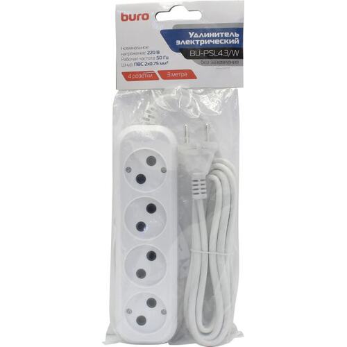 Сетевой удлинитель Buro BU-PSL4.3/W 3м (4 розетки) белый (пакет ПЭ) (продается кратно 10 шт.)