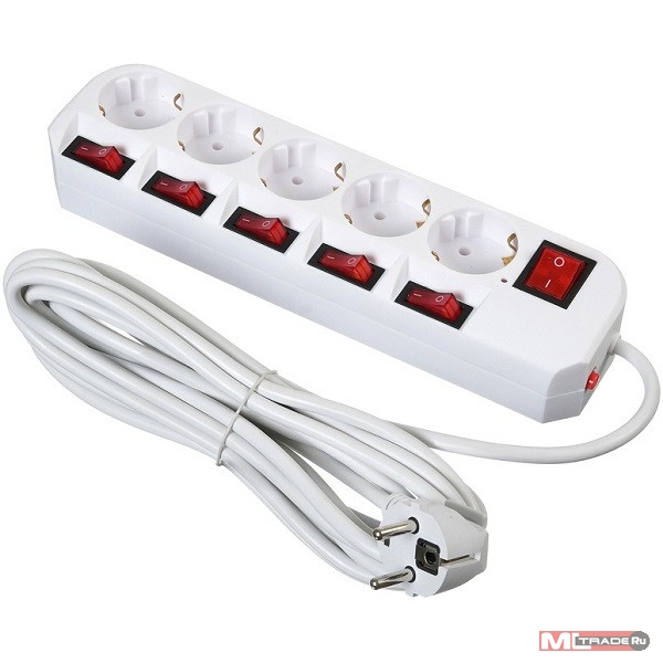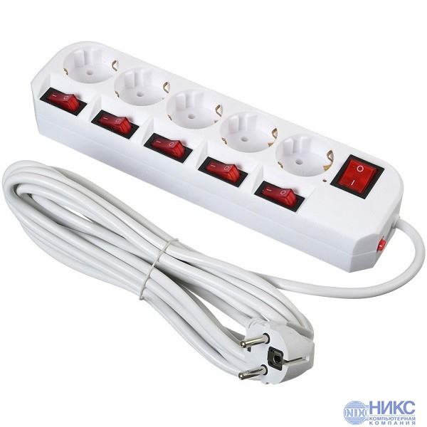 Сетевой фильтр Buro 500SH-5-SW-W 5м (5 розеток) белый (коробка)