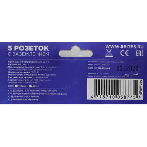 Сетевой фильтр 5bites SP5W-330 Сетевой фильтр 5S / 3*1.5MM2 / 16A / ABS / 3M / WHITE