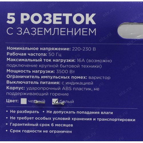 5 розеток евростандарт с заземлением