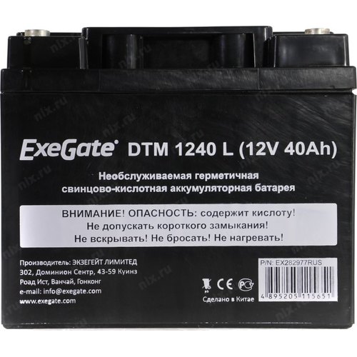 Батареи Exegate EX282977RUS Аккумуляторная батарея DTM 1240 L (12V 40Ah, под болт М5)