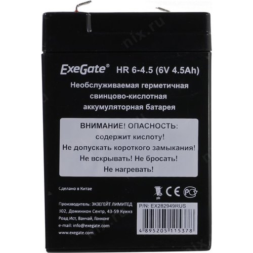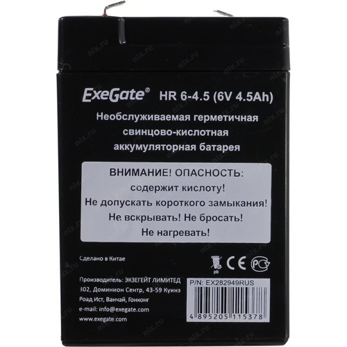 Батареи Exegate EX282949RUS Аккумуляторная батарея HR 6-4.5 (6V 4.5Ah, клеммы F1)