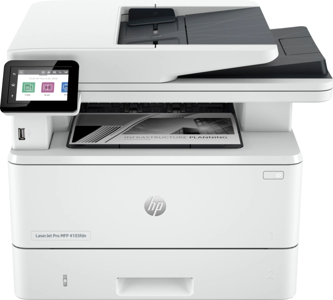 Принтер/МФУ HP LaserJet Pro MFP 4103fdn (2Z628A_B19) (A4, 1200dpi, 38ppm, 512Mb, 1200 MHz tray 100+250 pages USB+Ethernet Prin, старт. картр. 3050стр.)