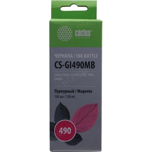 Чернила Cactus CS-GI490MB GI-490 пурпурный 100мл для Canon Pixma G1400/G2400/G3400