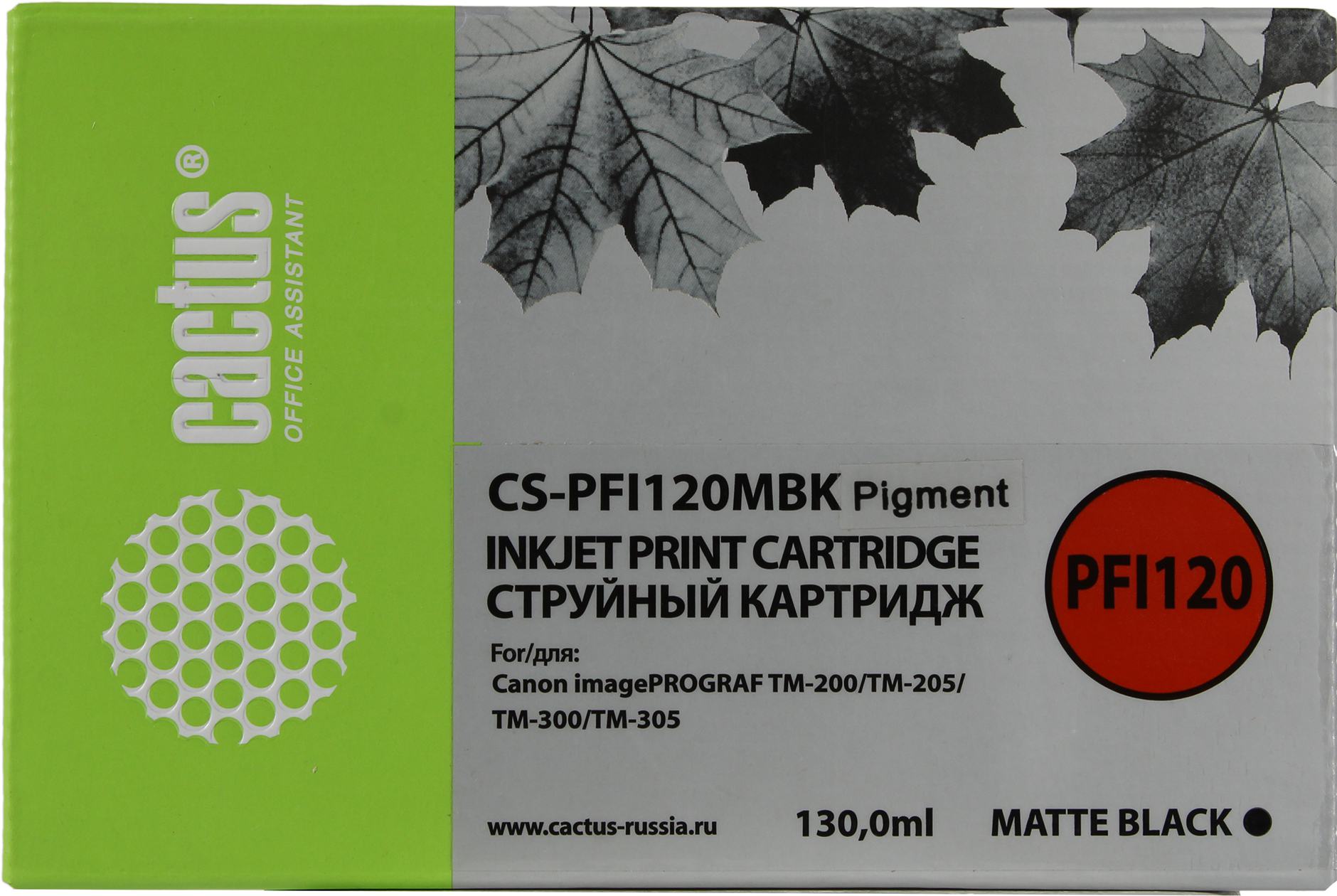 Картридж струйный Cactus CS-PFI120MBK PFI-120 MBK черный матовый (130мл) для Canon imagePROGRAF TM-200/TM-205/TM-300/TM-305 с чипом