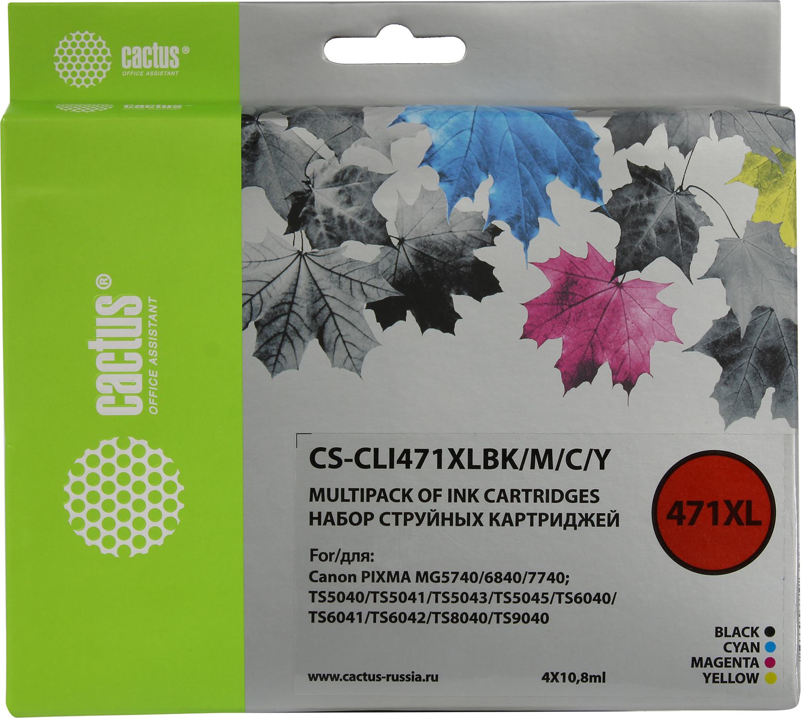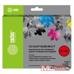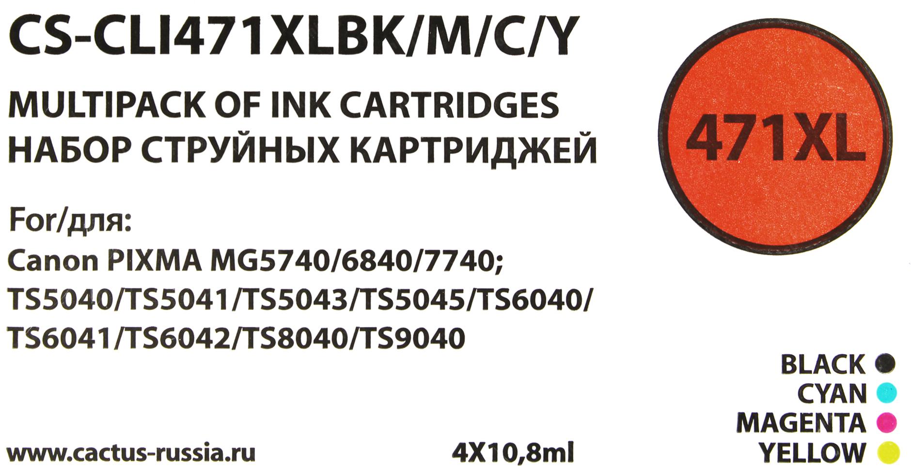 Картридж струйный Cactus CS-CLI471XLBK/M/C/Y CLI-471XL фото черный/голубой/пурпурный/желтый набор (43.2мл) для Canon TS5040/MG5740/MG6840/MG7740 с чипом