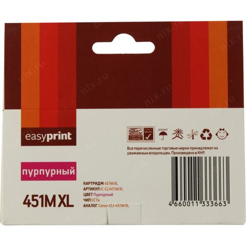 Расходные материалы Easyprint CLI-451M XL Картридж IC-CLI451M XL для Canon PIXMA iP7240/MG5440/6340, пурпурный, с чипом [IC-CLI451MXl]