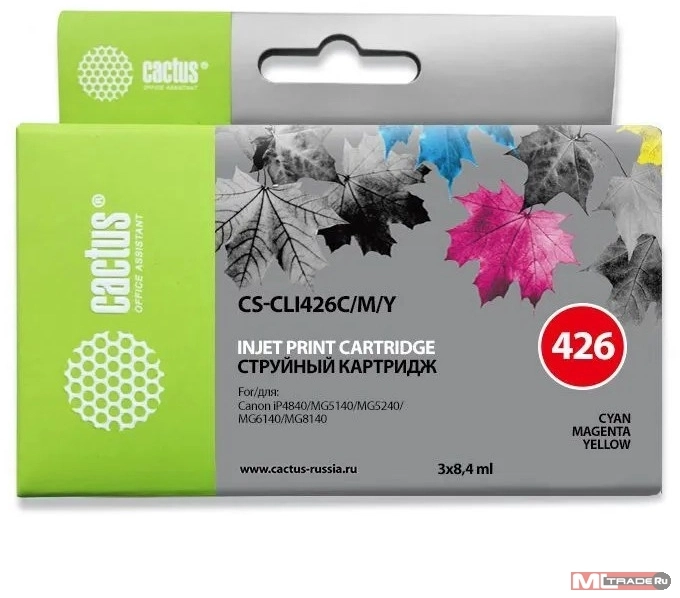 Картридж струйный Cactus CS-CLI426C/M/Y CLI-426 голубой/пурпурный/желтый набор (27мл) для Canon MG5140/5240/6140/8140/MX884 с чипом
