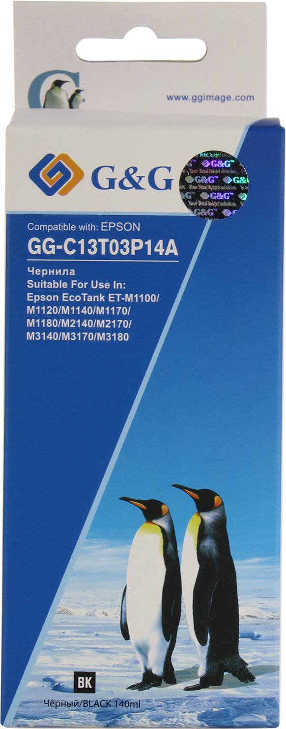 Чернила G&G GG-C13T03P14A 110BK черный пигментный 140мл для Epson M1100/M1120/M1140/M1170/M1180