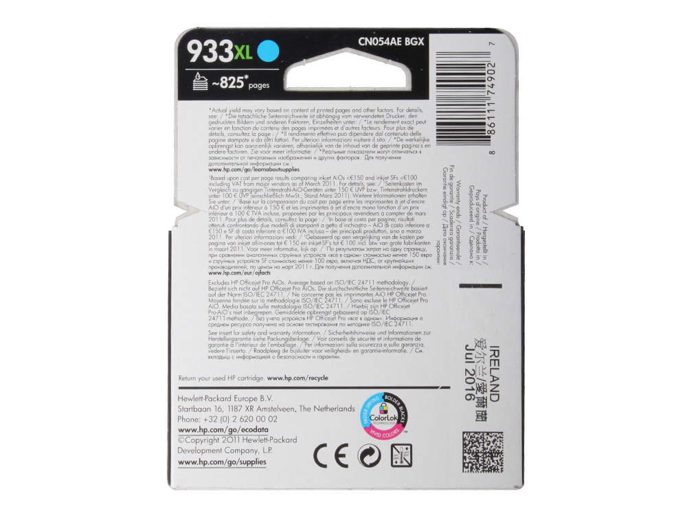 Картридж струйный HP 933XL CN054AE голубой (825стр.) для HP OJ 6700/7100