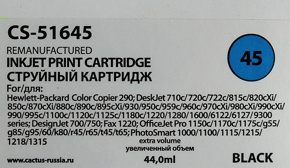 Расходные материалы CACTUS 51645 Картридж (CS-51645) №45 (черный) для DeskJet 710c/720c/722c/815c