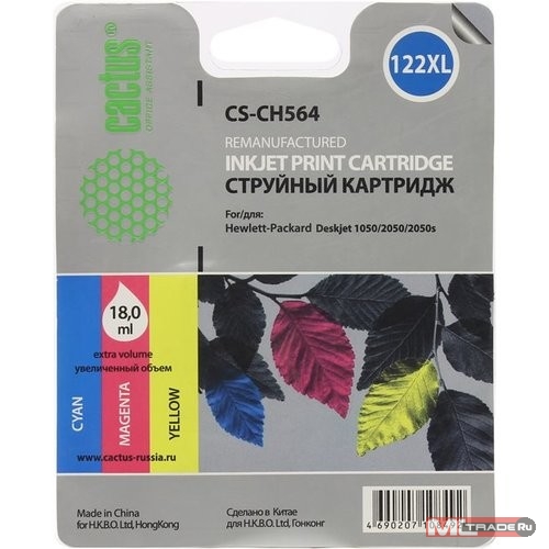Картридж струйный Cactus CS-CH564 №122XL многоцветный (18мл) для HP DJ 1050/2050/2050s с чипом