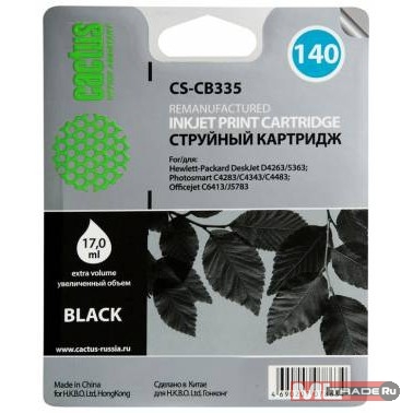 Картридж струйный Cactus CS-CB335 №140 черный (17мл) для HP DJ D4263/D4363 с чипом