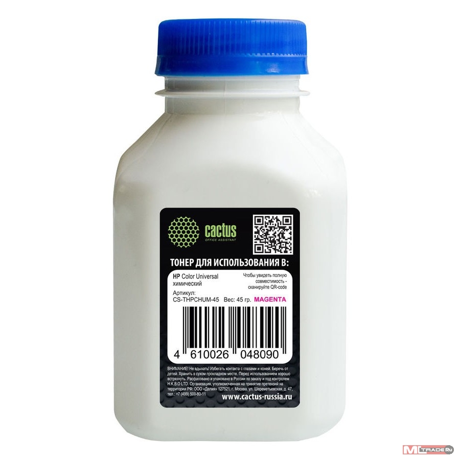 Тонер Cactus CS-THPCHUM-45 пурпурный флакон 45гр. для принтера HP Color Universal CF540A/CF400A/CF410A/CF400A/CE310