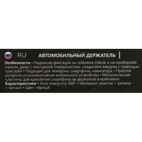 Универсальный магнитный автомобильный держатель с крепление на присоске, смартфон крепится к держателю с помощью металлической пластины, которая приклеивается к его задней стороне или просто закладывается внутрь чехла. В комплект входят две пластины разного размера. К особенностям крепления можно отнести жесткую стойку, которая надежно держит устройство в заданном положении.