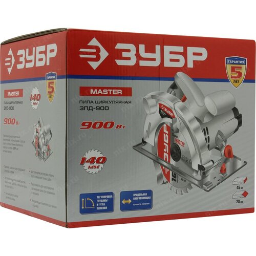 Циркулярная пила (дисковая) Зубр ЗПД-900 900Вт (ручная) D диска.:140мм